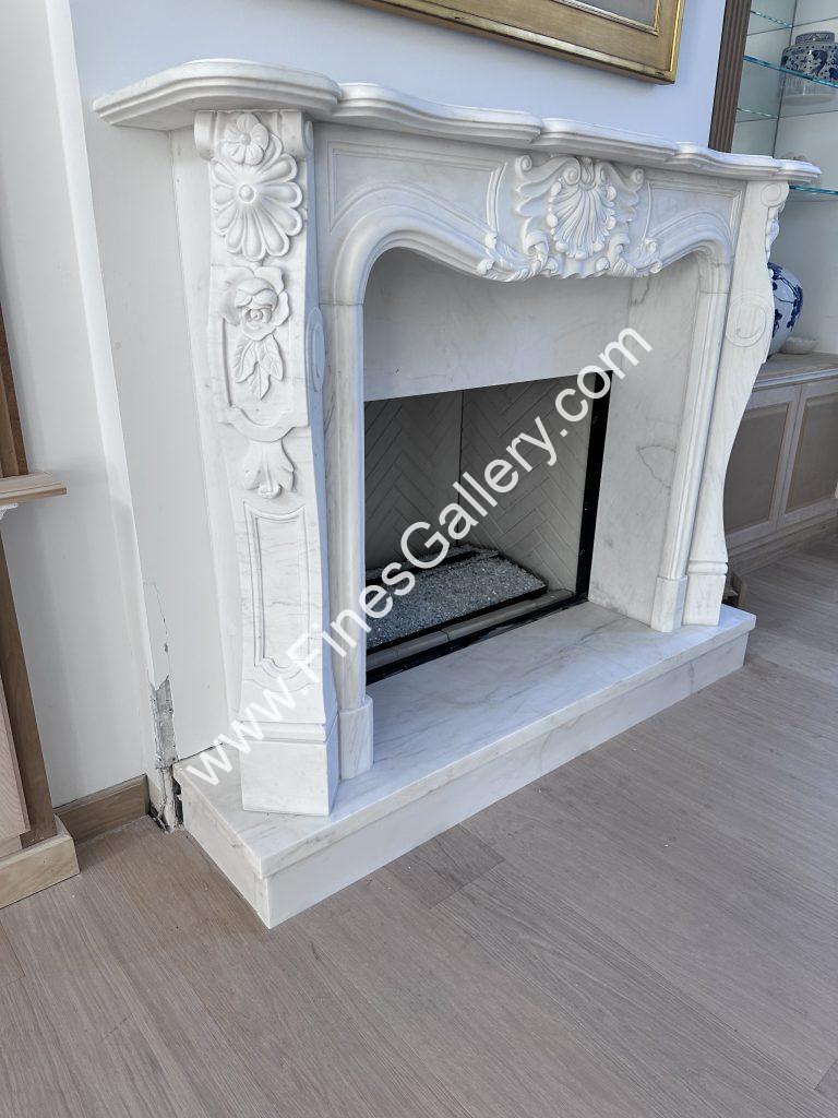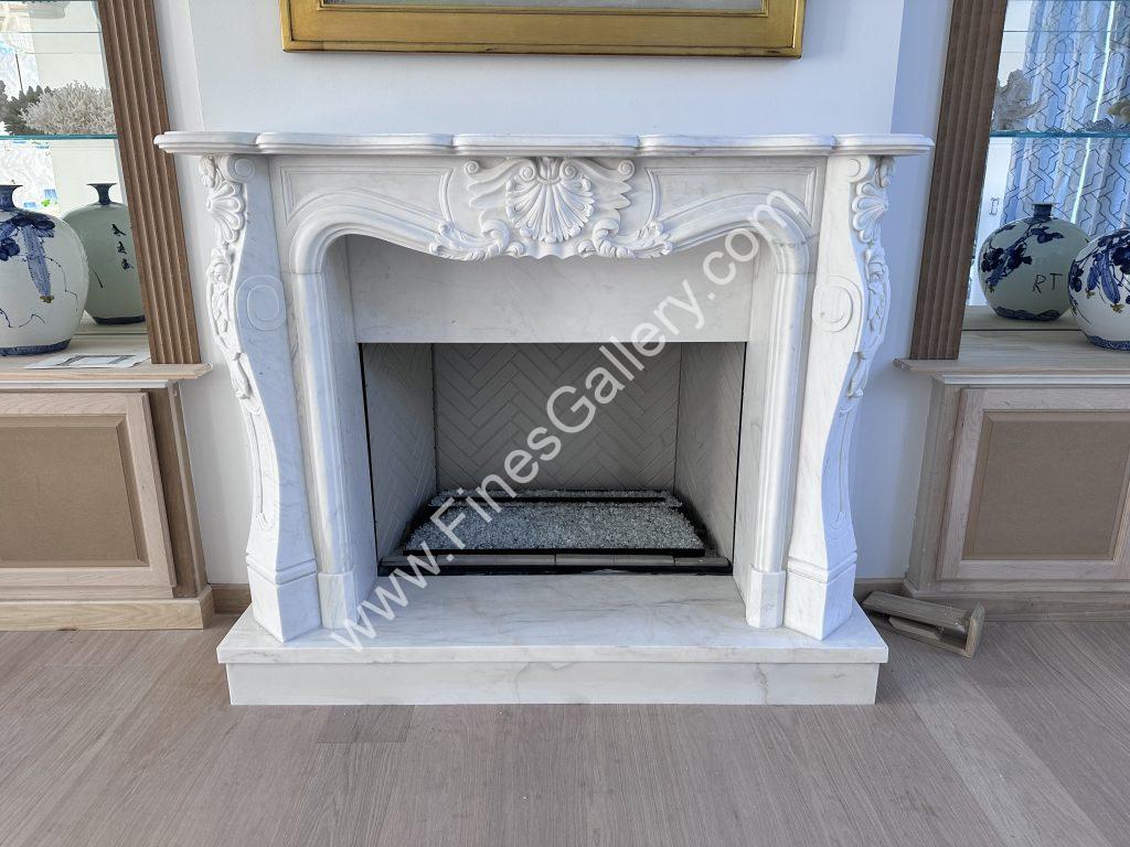 Fines Gallery has 150 + or – in stock hand carved marble mantels to choose from. The mantels can be purchased right on the spot. The company has supplied the entire US since the 90’s and can literally customize anything to be made to order in case the homeowner cannot find anything from their vast inventory. It’s rather impressive when considering these are hand carved from real marble!