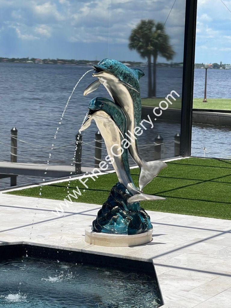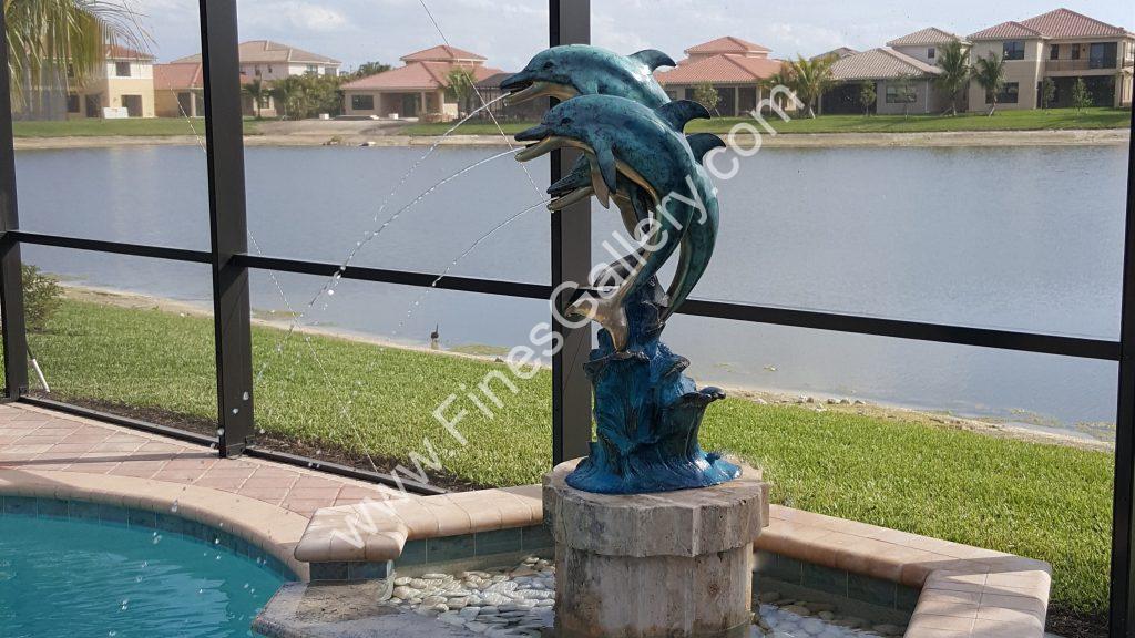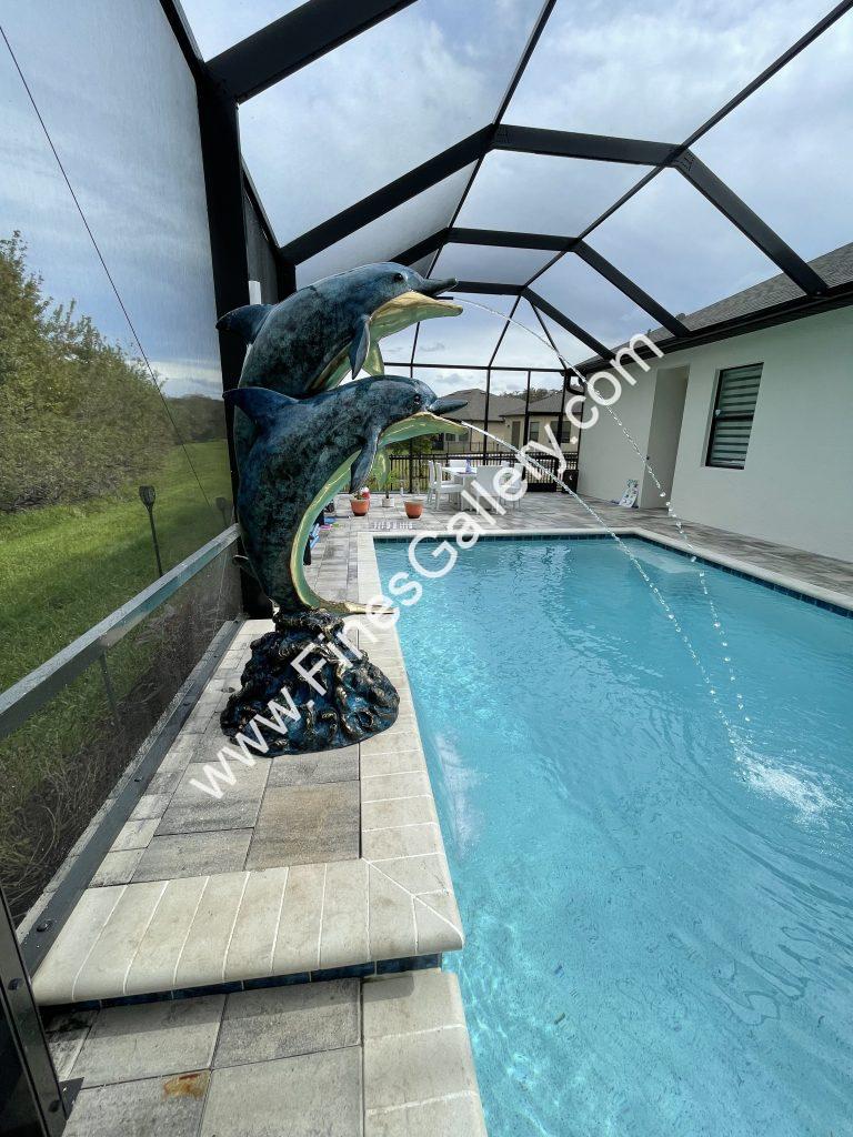 Fine’s Gallery of Bonita Springs has offered an array of stunning natural stone and bronze fountains delivered nationwide for the past 26 years. This blog will focus on some of the recent projects we’ve delivered and installed. If you’re searching for the perfect poolside fountain feature you should look no further. The quality and selection we offer is truly unmatched! Below you’ll read more and see more of our recent installations of bronze dolphins, manatees, mermaids, marlin, sea turtles and more!