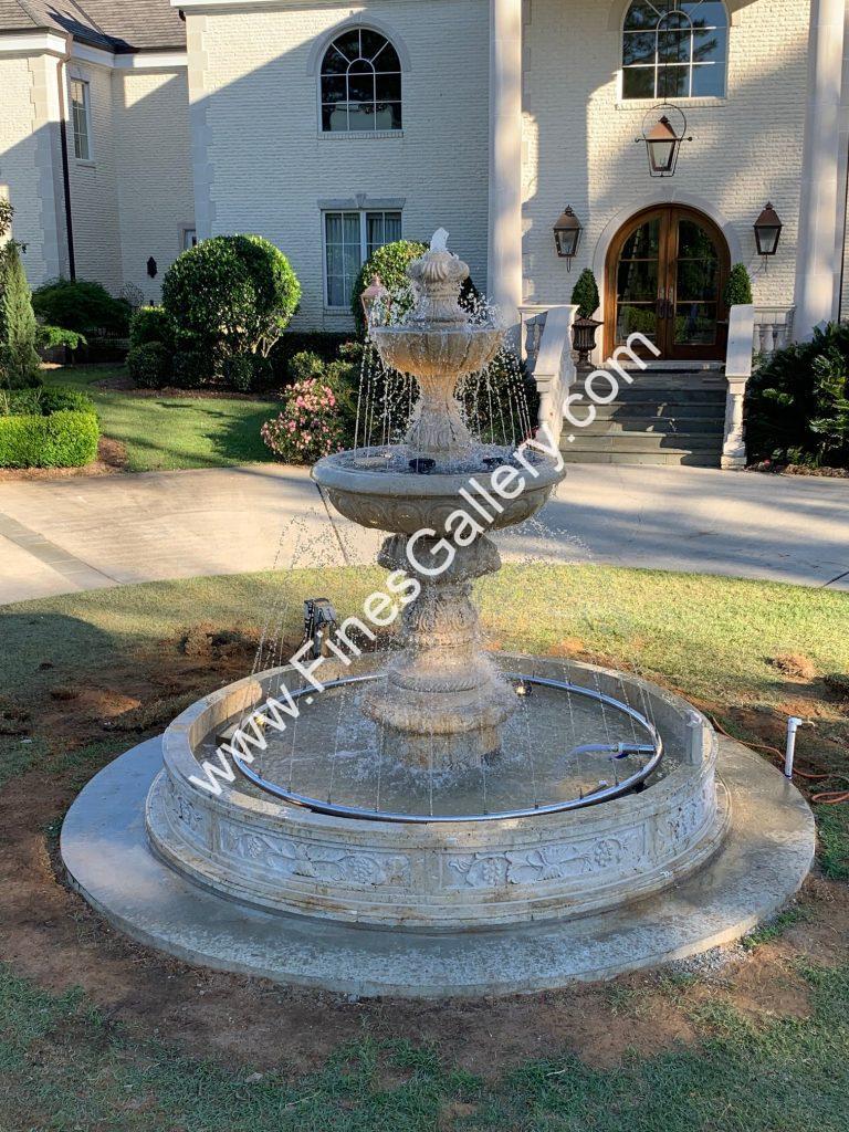 Pictured below is an oustanding quality three tiered travertine fountain in pool basin with lights & waterjets! ( All the bells & whistles )
