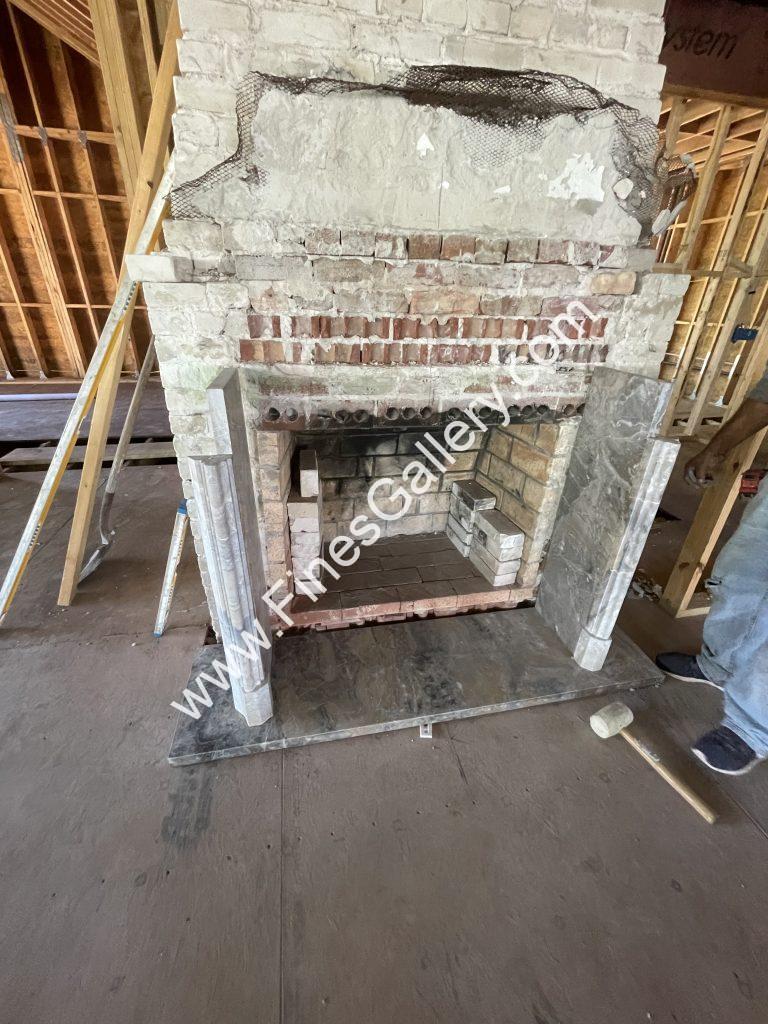 Completed installation of the marble fireplace mantel. Just imagine once the construction has been completed!