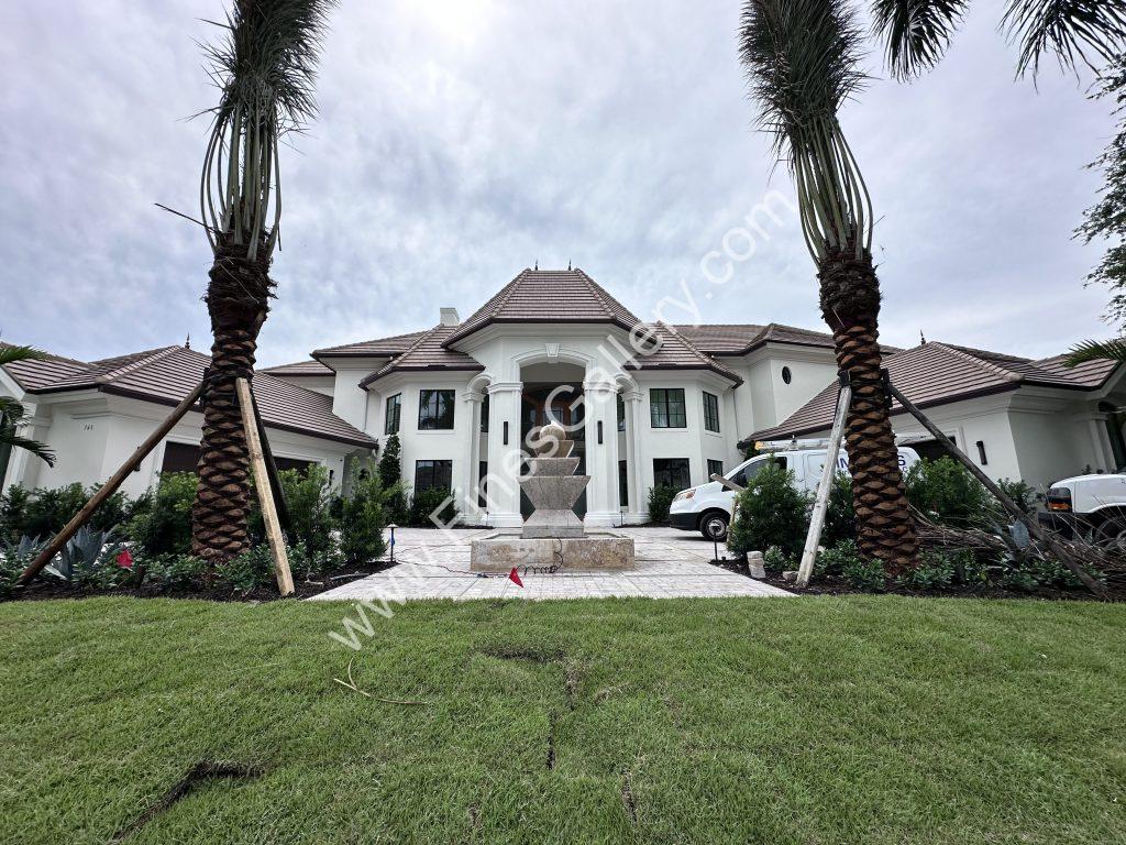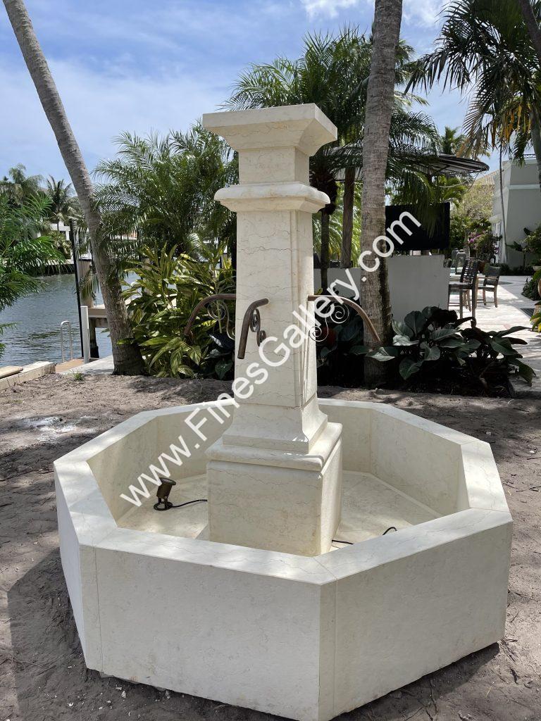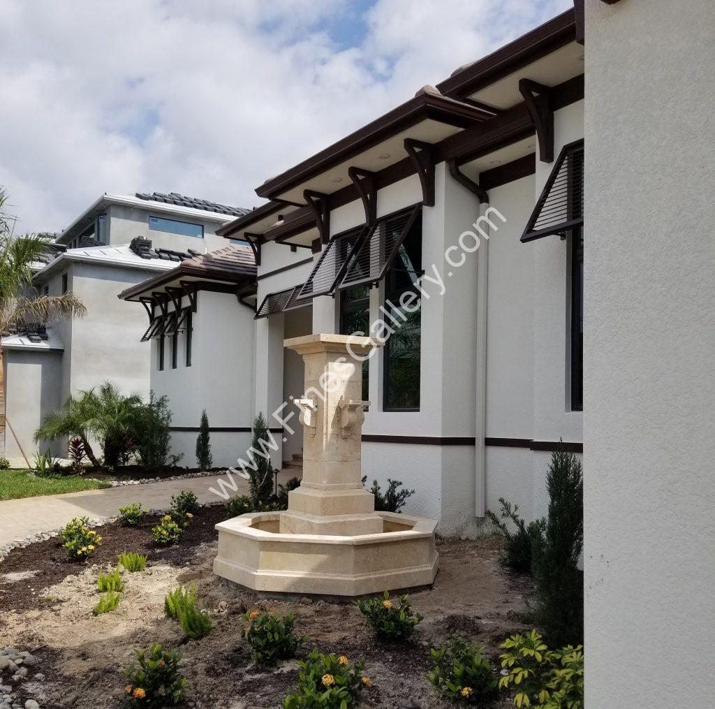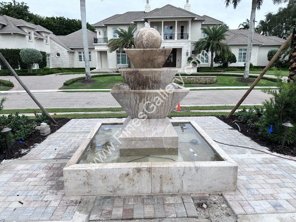 Upscale Residential Classic Light Travertine Fountain Installation in Naples Florida